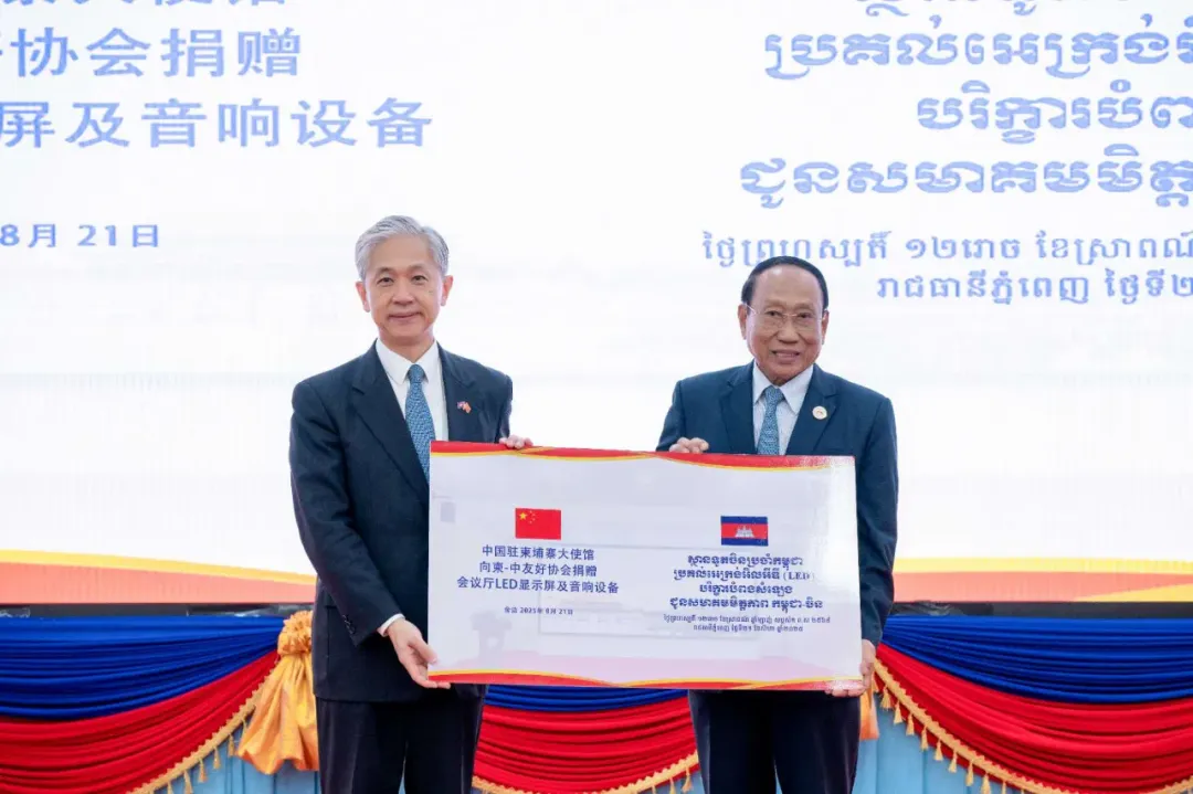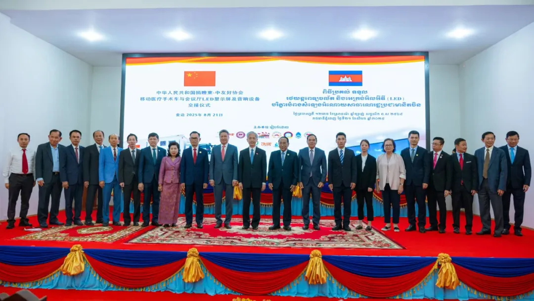 8月21日,中国驻柬使馆和北京平澜公益基金会向柬中友协同时交接捐赠的LED屏幕、音响设备及移动医疗手术车。驻柬大使汪文斌、柬中友好协会主席艾森沃、柬副首相孙占托、国务大臣李突以及中柬友好人士约100人出席交接仪式。